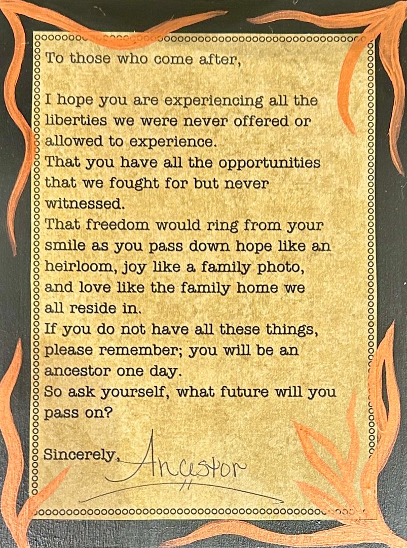 poem, copper acrylic paint, wooden plank 7 in x 5 in x 00.6 in / 17.78 cm x 12.7 cm x 1.52 cm