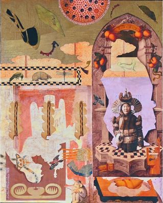 hand-cut paper, metal leaf, and acrylic paint on ClayBoard