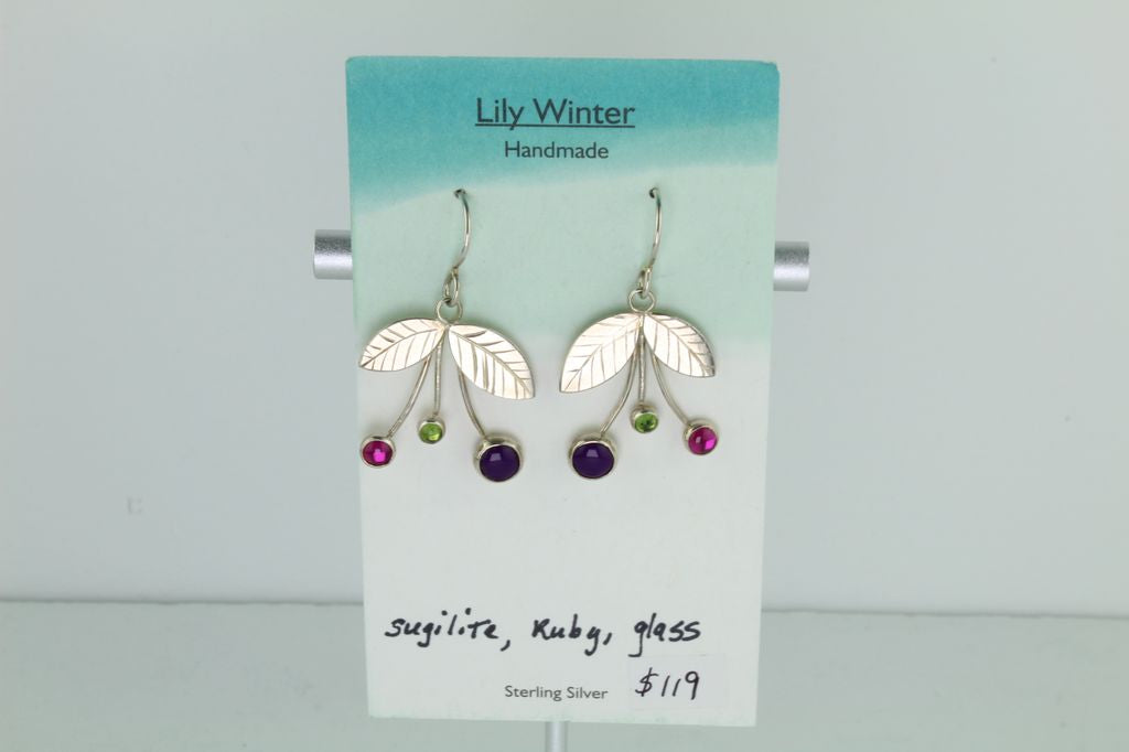 Sugilite, Ruby, and Glass Earrings